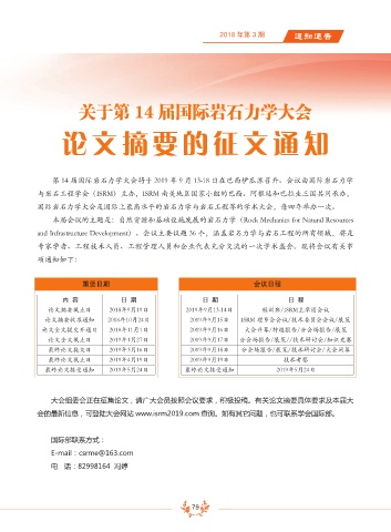 会的最新信息,可登陆大会网站 www.isrm2019.com 查询。如有其它问题,也可联系学会国际部。
